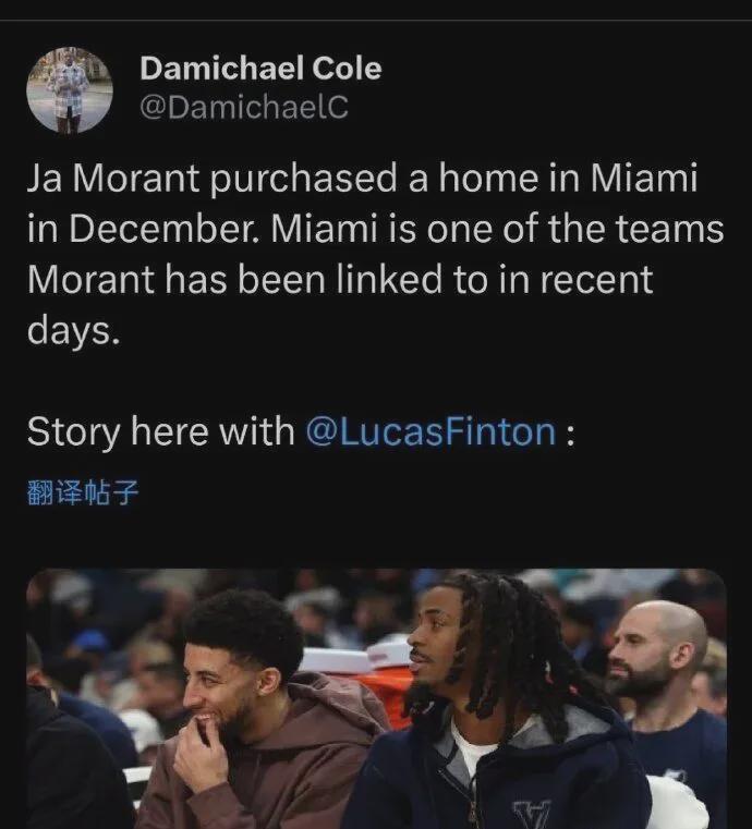 值得一提的是,《孟菲斯商业呼声报》表示,在迈阿密-戴德县房产记录查询到莫兰特已在迈阿密购置了一处房产,价值320万美元,此次购买发生在灰熊考虑交易前者的消息得到确认两周多之前。